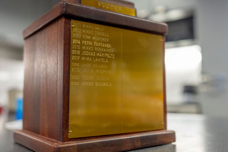 ![]() Vuoden Palomiesurheilija palkintoineen. (kuva: raumalainen.fi) |